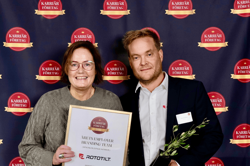 I samband med Karriärföretagens Stora Karriärdag på Berns, Stockholm vann Rototilt pris som Årets Employer Branding Team.